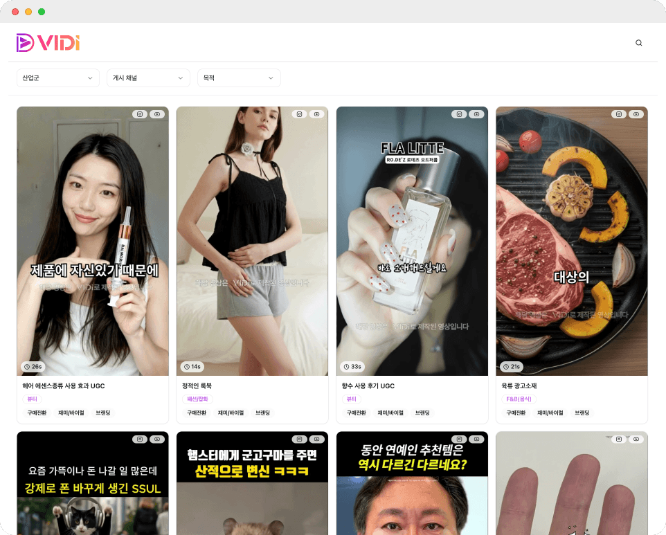 동기간 타 광고소재 대비 VIDI로 만든 숏폼의 CTR이 약 5배 높게 나타났습니다. 많은 비용 소비하는 광고, 적은 비용으로 최대한의 효율을 내세요!