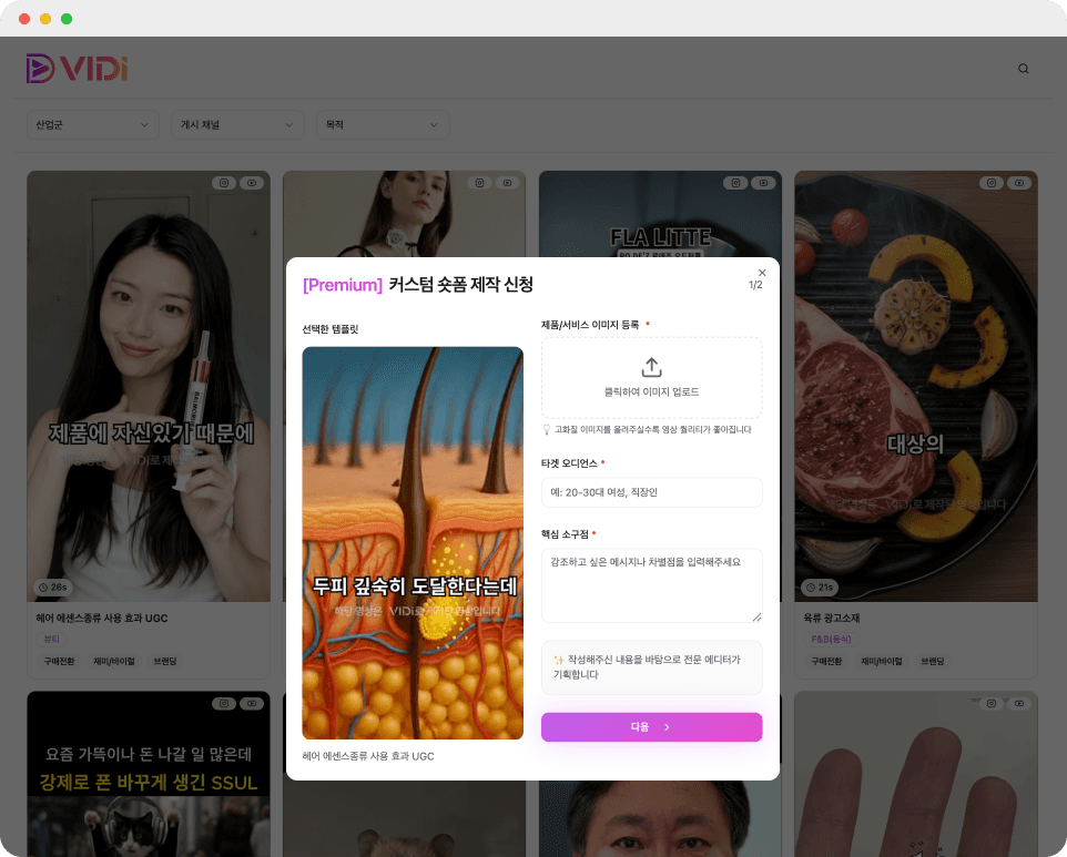 VIDI를 사용한 고객이 한 달 내에 다음 숏폼을 만드는 비율입니다. 많은 고객이 VIDI에 만족하고 있습니다